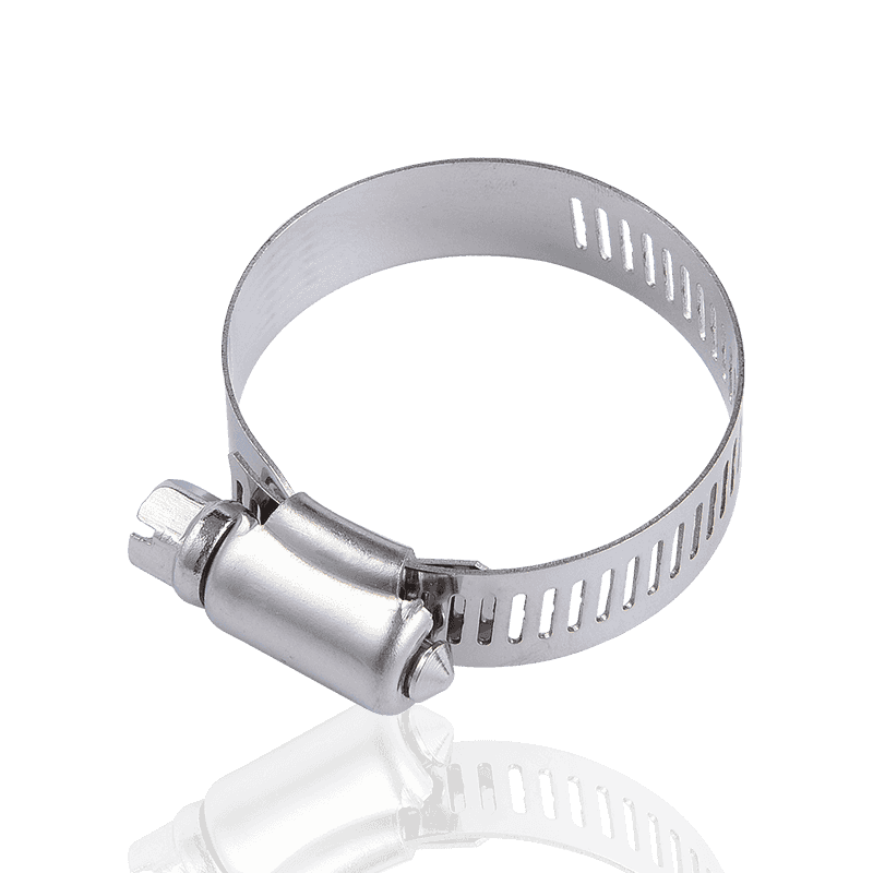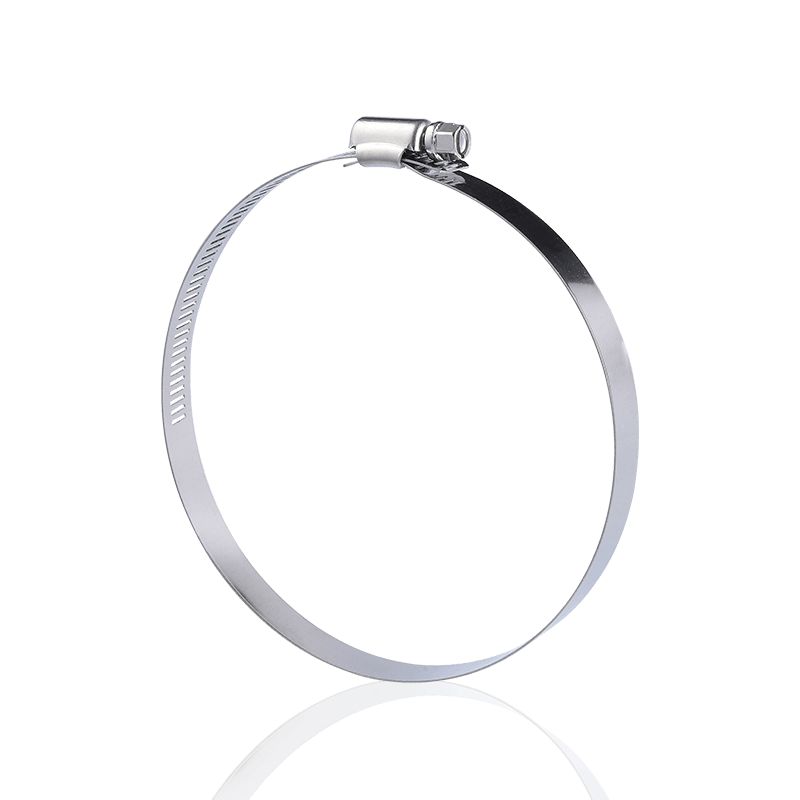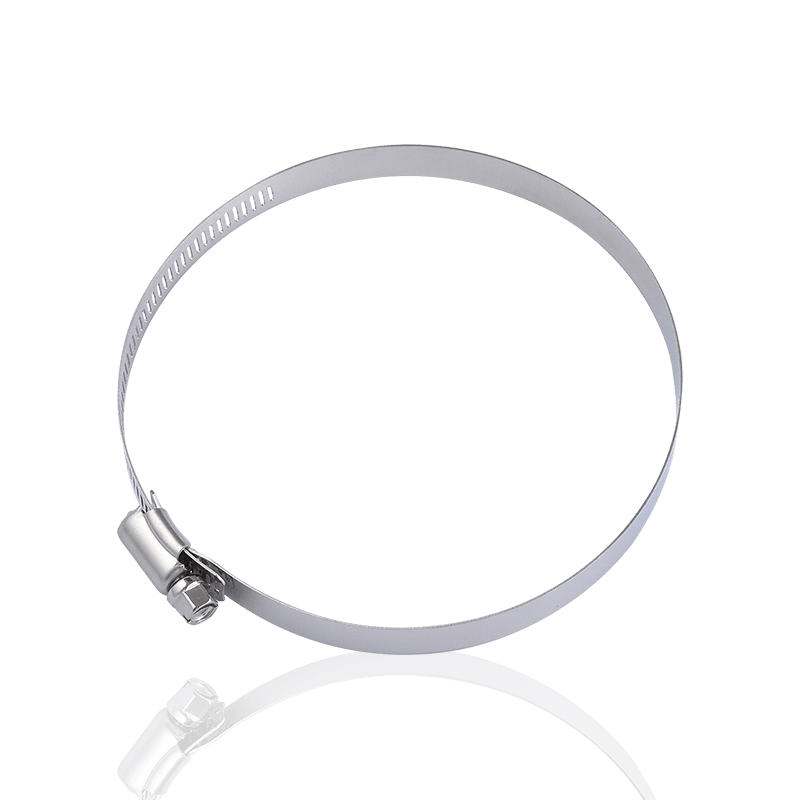 Diperbuat daripada keluli tahan karat berkualiti tinggi, ia mempunyai ciri anti-karat dan anti-karat yang sangat baik. Walaupun digunakan untuk masa yang lama dalam persekitaran yang keras seperti lembapan, asid dan alkali, ia boleh mengekalkan permukaan licin, berkesan mencegah karat dan kerosakan, dan memanjangkan hayat perkhidmatan. Melalui proses pengecapan melalui lubang, alur gigitan pada tali pinggang keluli dilubangkan, yang bukan sahaja mengurangkan berat keseluruhan, tetapi juga membolehkan gigi skru tertanam dengan ketat dalam alur. Reka bentuk ini memberikan daya gigitan yang lebih kuat apabila mengunci, memastikan ketegasan dan pengedap sambungan.